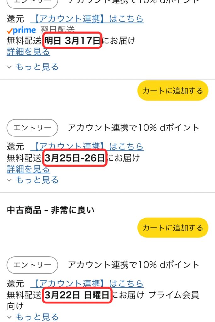 一部Amazonプライム会員といった条件が必要になる場合もありますが、やはりカメラが手元に届くまでの時間は圧倒的に早いです。