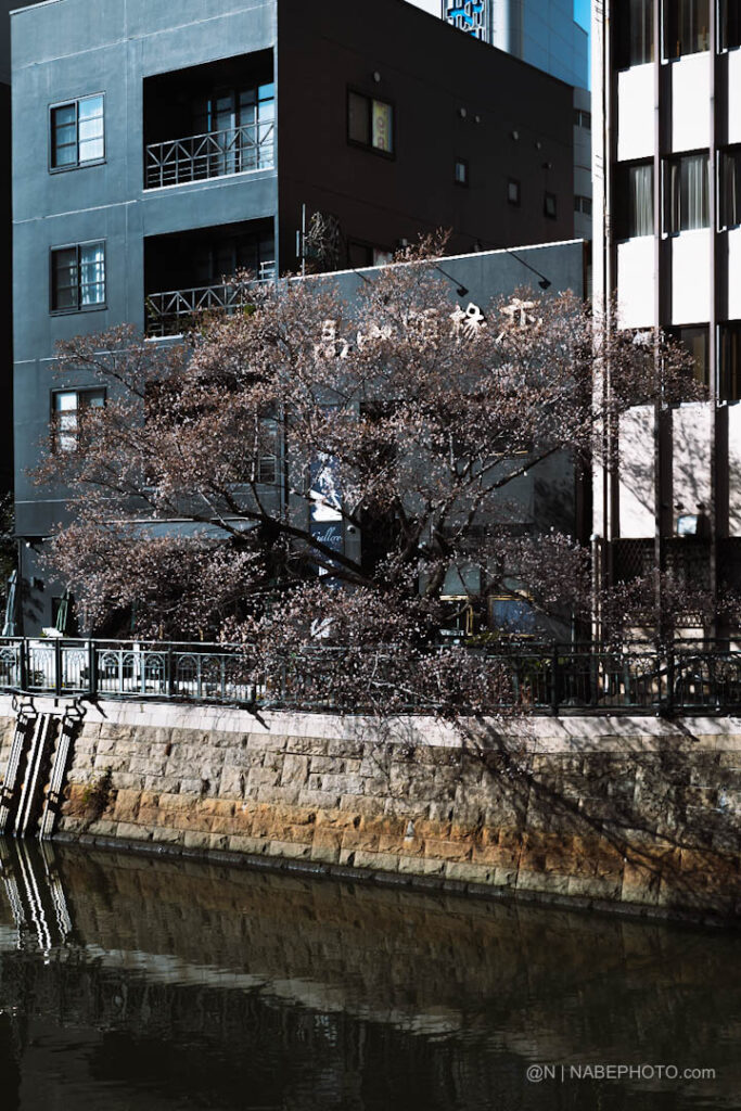 名古屋市の地下鉄東山線、伏見駅の西側に位置する「納屋橋」の南北に渡る堀川沿いには早咲きの四季桜の木が植えられています。