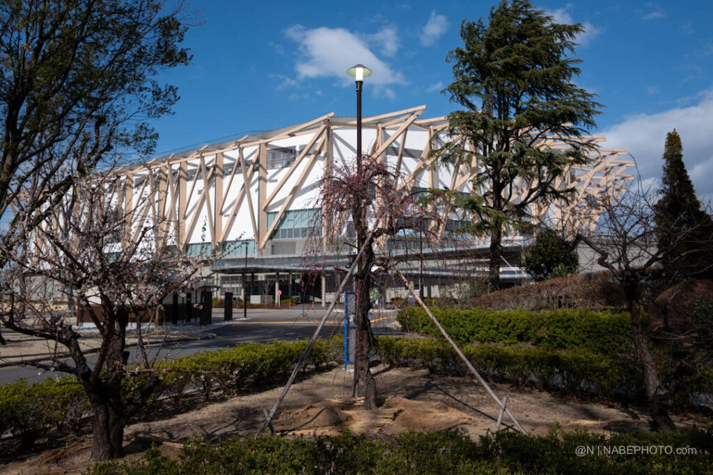 IGアリーナを背景に3本の梅の木が生えていました。開花したら良い写真が撮れそうです。