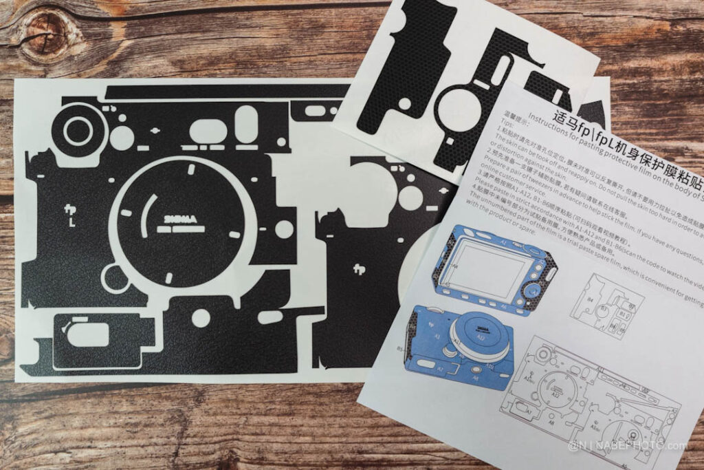 SIGMA fp/fpL用のスキンシールですので、前面部分はfpとfpL用の2パターン用意されていました。今回はfpL用で練習してから一度剥がしてfp用を貼り付けていきます。